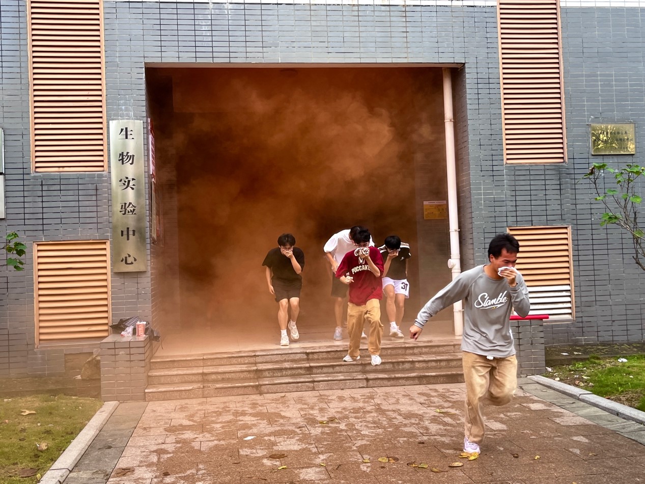在消防演练环节,模拟了实验室突发火灾的场景。火势迅速蔓延,浓烟滚滚,师生们按照预定的方案,由实验室教师引导迅速按照疏散路线有序撤离。在撤离过程中,师生们严格遵守消防安全规范,保持冷静,用湿毛巾捂住口鼻,弯腰低姿,确保自身安全。通过此次演练,师生们进一步掌握了火场逃生的基本方法和技巧,提高了应对突发火灾事故的能力。现场还联系驻校民警为师生们进行现场指导和培训,详细介绍了实验室常用灭火器的使用方法和注意事项,并现场演示了灭火器的操作流程。师生们积极参与互动环节,纷纷上前体验灭火器的使用,进一步提高了应急自救能力。