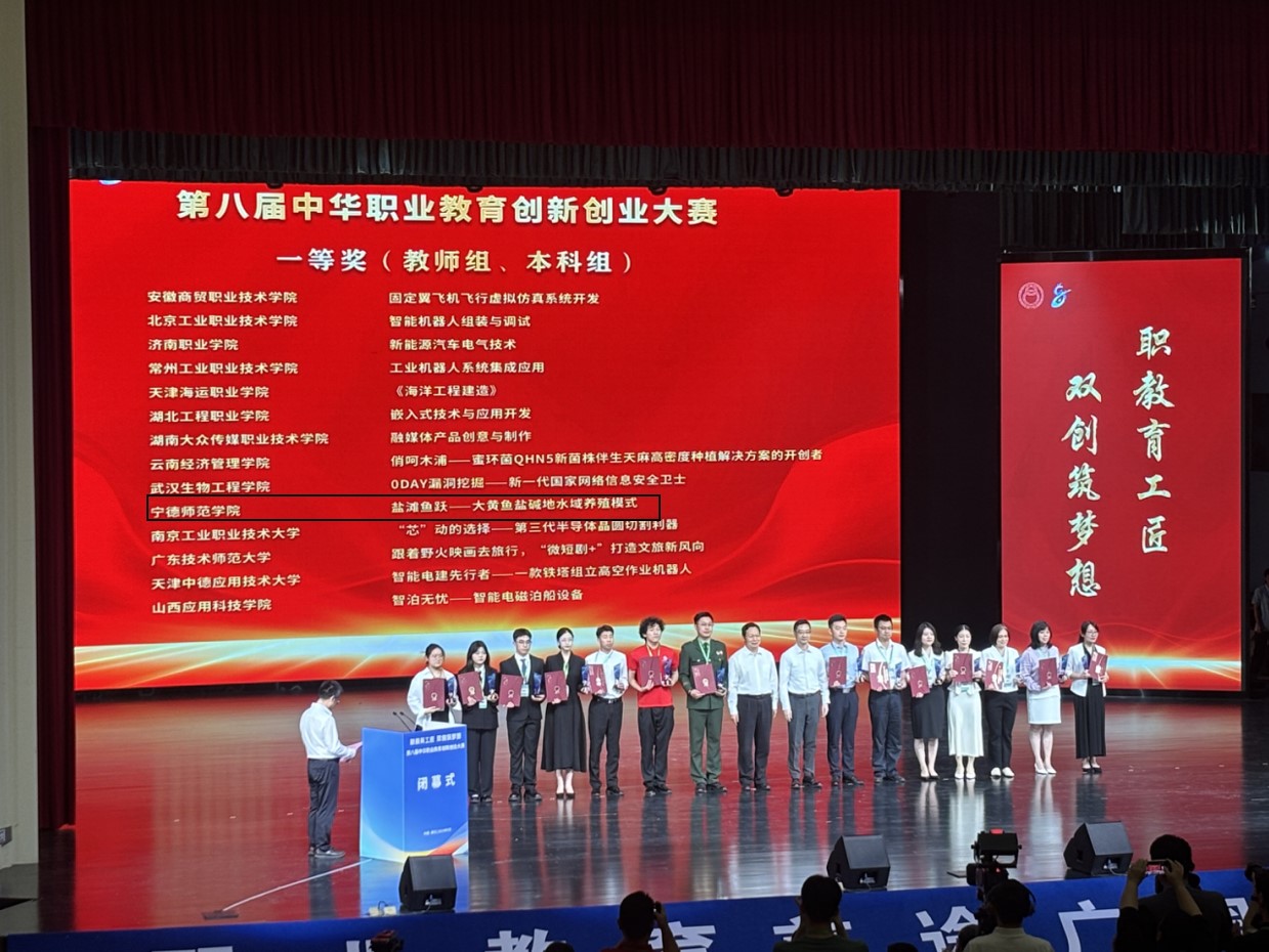 5月29日至30日,第八届中华职业教育创新创业大赛全国总决赛在湖北省黄石市举行,公司《盐滩鱼跃—大黄鱼盐碱地水域养殖模式》项目通过激烈角逐,凭借独特的社会意义,显著的应用价值和广阔的市场前景,以突破性技术斩获全国第四的优异成绩,荣获第八届中华职业教育创新创业大赛全国本科组一等奖。