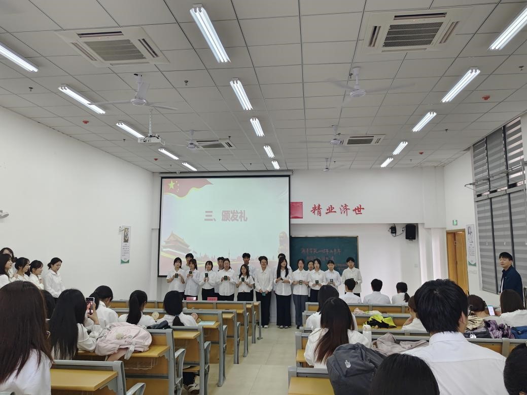 新团员代表与优秀团员代表相继发言。她们结合自身成长经历,鼓励新团员积极投身团组织活动,在学业发展中勇担责任,在社会实践中锤炼品格,以实际行动践行团员的先进性。仪式最后,团委书记对新团员表示热烈欢迎与祝贺,并强调共青团员的责任与使命,指出团员身份不仅是荣誉,更是“党有号召、团有行动”的政治担当,他勉励全体团员珍惜政治身份,牢记入团初心,将个人理想融入国家发展大局,以“强国有我”的担当为实现中华民族伟大复兴的中国梦贡献青春力量。