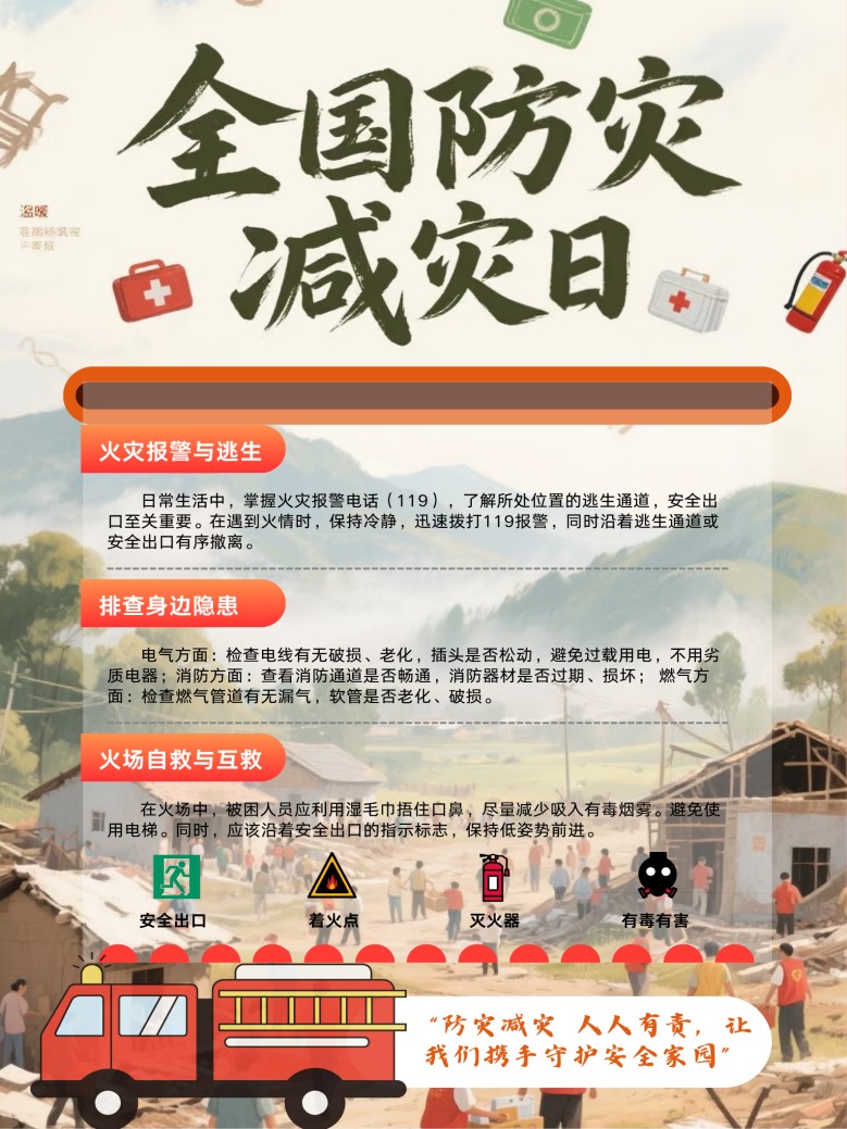 2025年5月13日至5月15日PA视讯集团官方网站开展“人人讲安全,个个会应急——排查身边灾害隐患”全国防灾减灾日海报设计比赛(一等奖作品:食品(闽台)24(1)邓乐蓉《全国防灾减灾日》)
