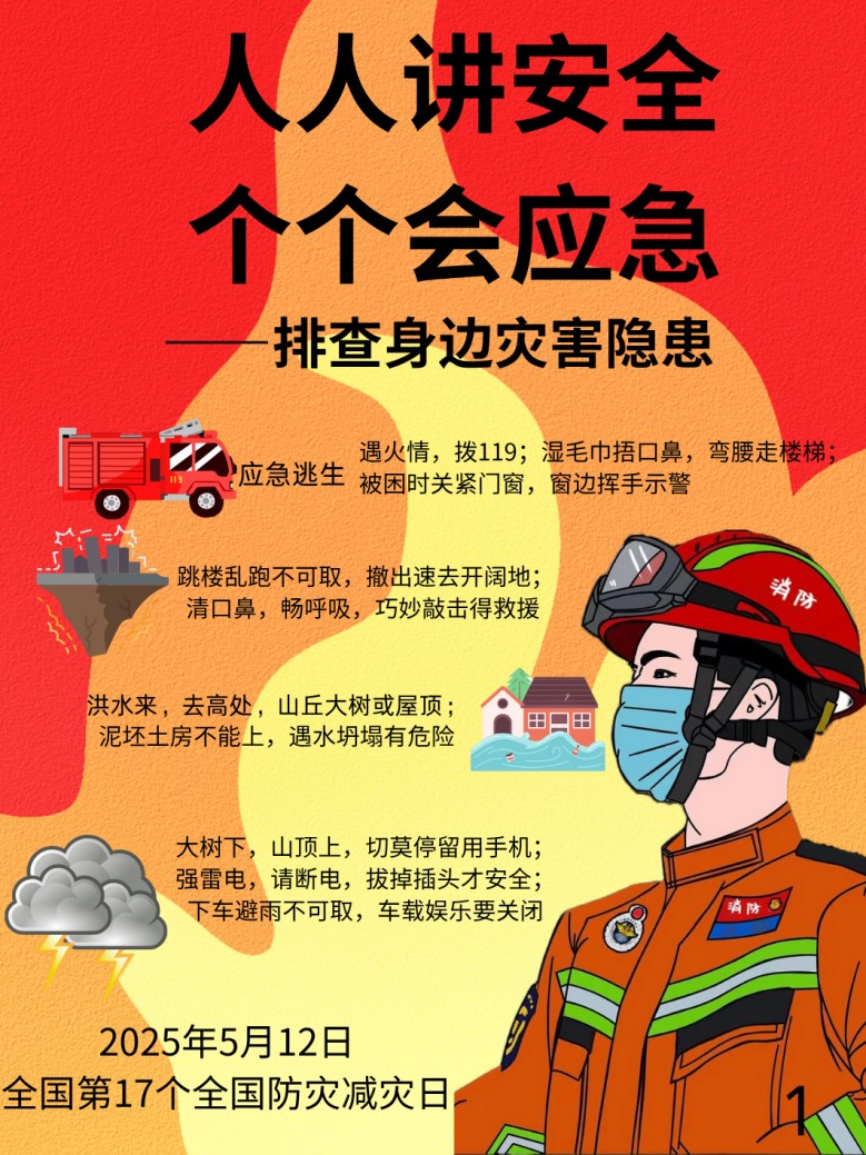 2025年5月13日至5月15日PA视讯集团官方网站开展“人人讲安全,个个会应急——排查身边灾害隐患”全国防灾减灾日海报设计比赛(三等奖作品:海洋24(1)黄崧源《人人讲安全,个个会应急》)