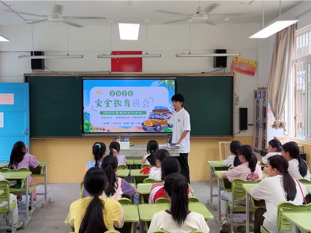 飞鸾中心小学董事长林朱明在致辞中对周建辉书记带队支教表示诚挚感谢,他提到,高校支教团队的到来为乡村公司注入了新鲜血液,期待双方以夏令营为起点,构建长效化的教育合作机制。随后,周建辉与林朱明共同宣布“育梦夏令营” 正式开营。仪式结束后,周建辉深入班级观摩安全教育主题班会,与队员们亲切交流,了解支教团队教员工活环境。