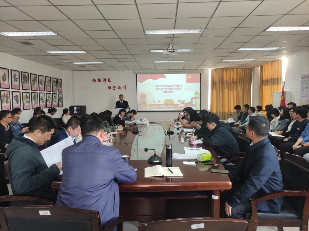 他讲到,党的二十大是新时代新征程上一次继往开来、举旗定向、谋篇布局的大会,全体师生要深刻领会二十大主题的蕴意,全面理解我们党在新征程上要举什么旗帜、走什么路、以什么样的精神状态、朝着什么样的目标继续前进。同时他从方法论的角度指导师生学习掌握党的二十大报告的丰富内涵,他提出既要在顶层设计高度来理解又要联系新时代以来确立的大政方针来把握,这样才能认识深刻、认识到位。随后他从实践基础、理论指导、使命任务、战略部署、政治保证、团结要求等六个方面,逐一阐述了党的二十大报告的丰富内涵。他用“3”+“16”+“5”这3个数字,总结了新时代十年的伟大变革,讲明过去5年和新时代十年的伟大成就是实践基础,马克思主义中国化时代化是理论指导,以中国式现代化全面推进中华民主伟大复兴是使命任务,高质量发展、教育科技人才、人民民主等十个方面是今后的战略布局,以及以伟大自我革命引领伟大社会革命是政治保证。