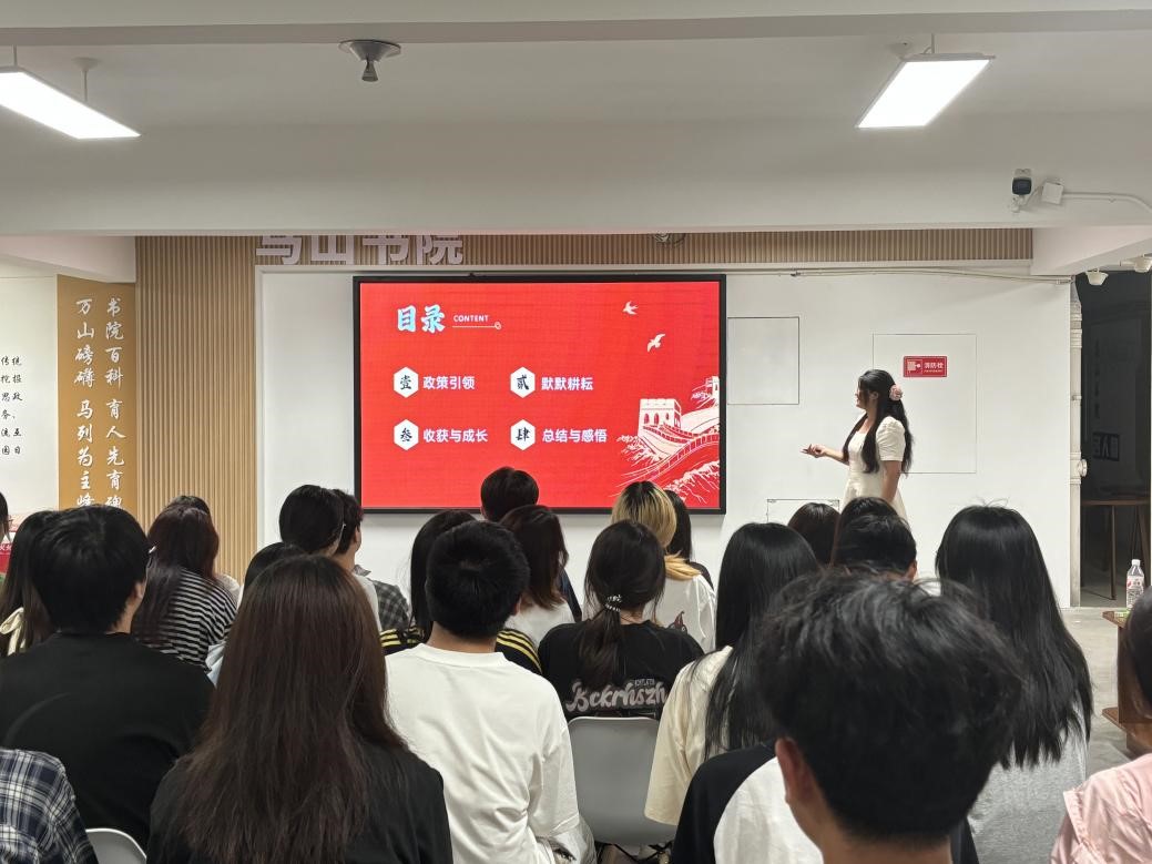 活动伊始,主持人以“青春与时代的双向奔赴”为切入点,宣布分享会正式开始。随后,6名员工党员发展对象依次上台,围绕活动主题,结合自身经历,分享了他们在学习、生活和实践中的成长感悟与收获。他们从细微处着眼,以青春故事回应时代命题,充分展现了新时代青年“向下扎根”的沉稳定力与“向上生长”的蓬勃锐气。庄妍妍同学讲述了自己乡村支教的难忘经历,用实际行动诠释了无私奉献精神;徐灿灿同学分享了自己在班级工作中践行服务理念的做法,从点滴小事中传递出责任与担当;谢晴同学畅谈了志愿服务中的温暖瞬间,以及自己在一次次锻炼中实现自我突破的历程。这些分享,不仅是个人成长的真实记录,更是新时代青年将个人理想融入时代发展浪潮的生动体现。