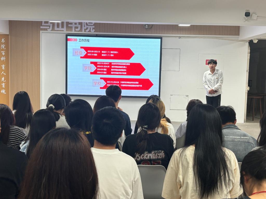 分享会接近尾声时,张志强同学分享了自己的心得体会:“师兄师姐们的经历让我深受鼓舞,他们用行动告诉我们,青春是用来奋斗的。作为新时代青年,我们要牢记嘱托,在强国建设中贡献自己的力量。”
